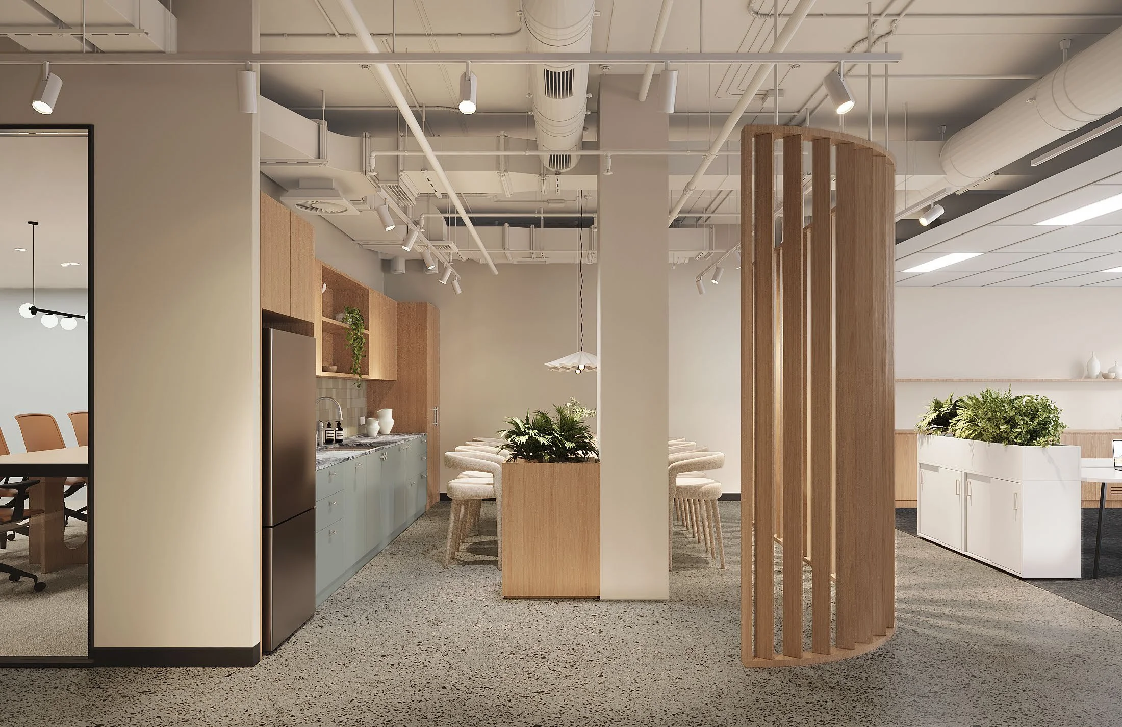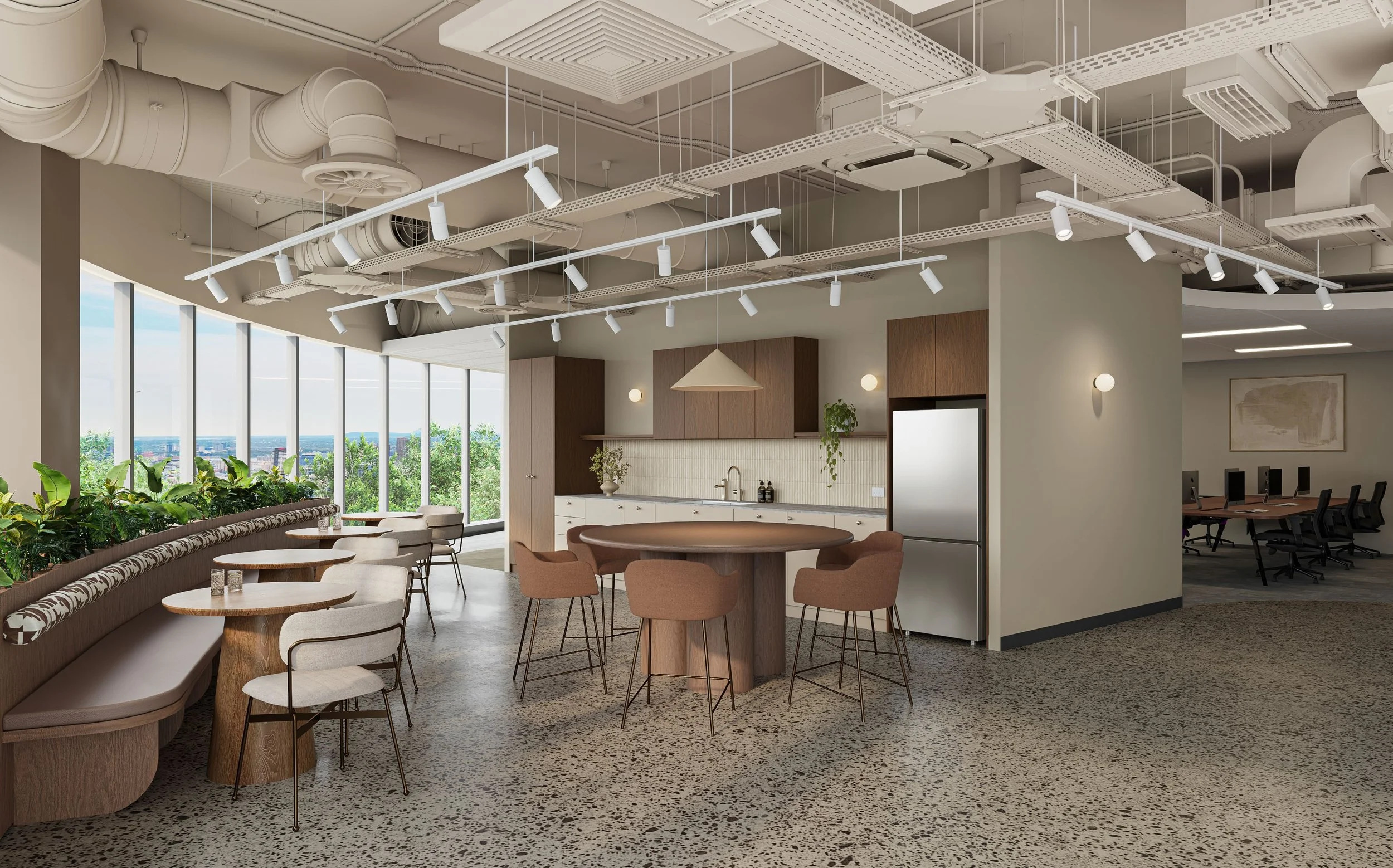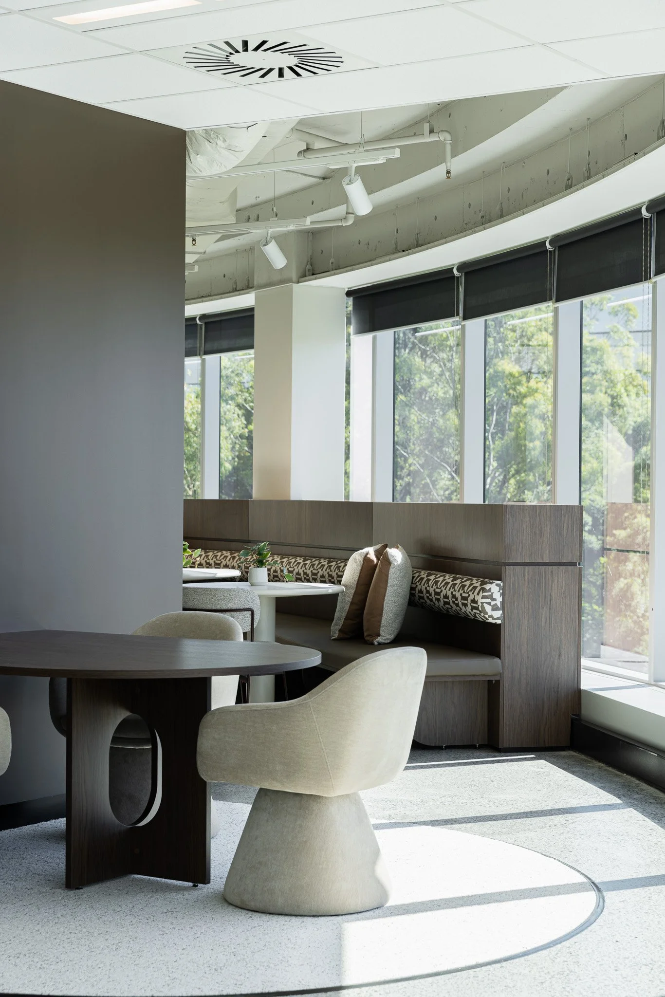 The design prioritises access to natural light for both workstations and breakout areas, supporting occupant wellbeing and productivity. Flexible spaces have been incorporated to accommodate hybrid working styles, while the use of calming colour palettes and varied environments helps support a diverse range of user needs.