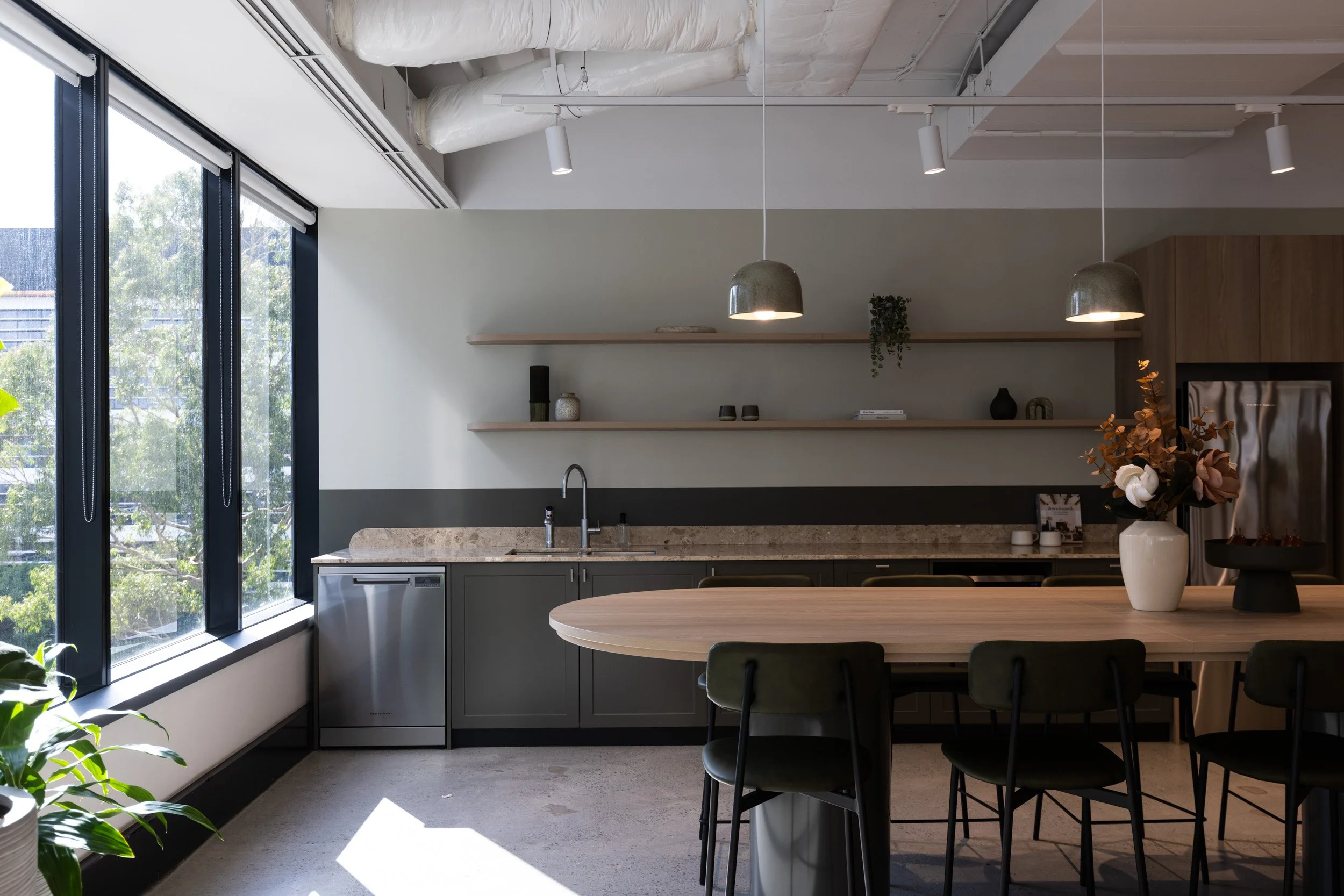 The most significant challenge for this project was meeting the condensed nine-week timeframe while upholding both Sheldon’s and the client’s sustainability-focused initiatives. Sheldon’s commitment to ESG principles informed every aspect of the suite designs, incorporating circular office fit-outs that emphasised durability and adaptability. Features such as LED lighting, smart lighting controls, and flexible modular furniture ensured that the spaces could evolve with changing tenant needs.
